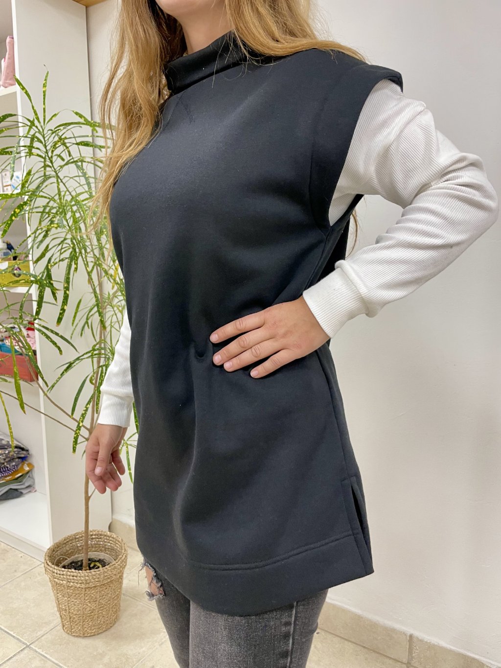 Velora je ideální na vrstvení – přes tričko, mikinu i šaty. Boční rozparky zaručí pohodlí při pohybu a delší délka krásně prodlouží siluetu.